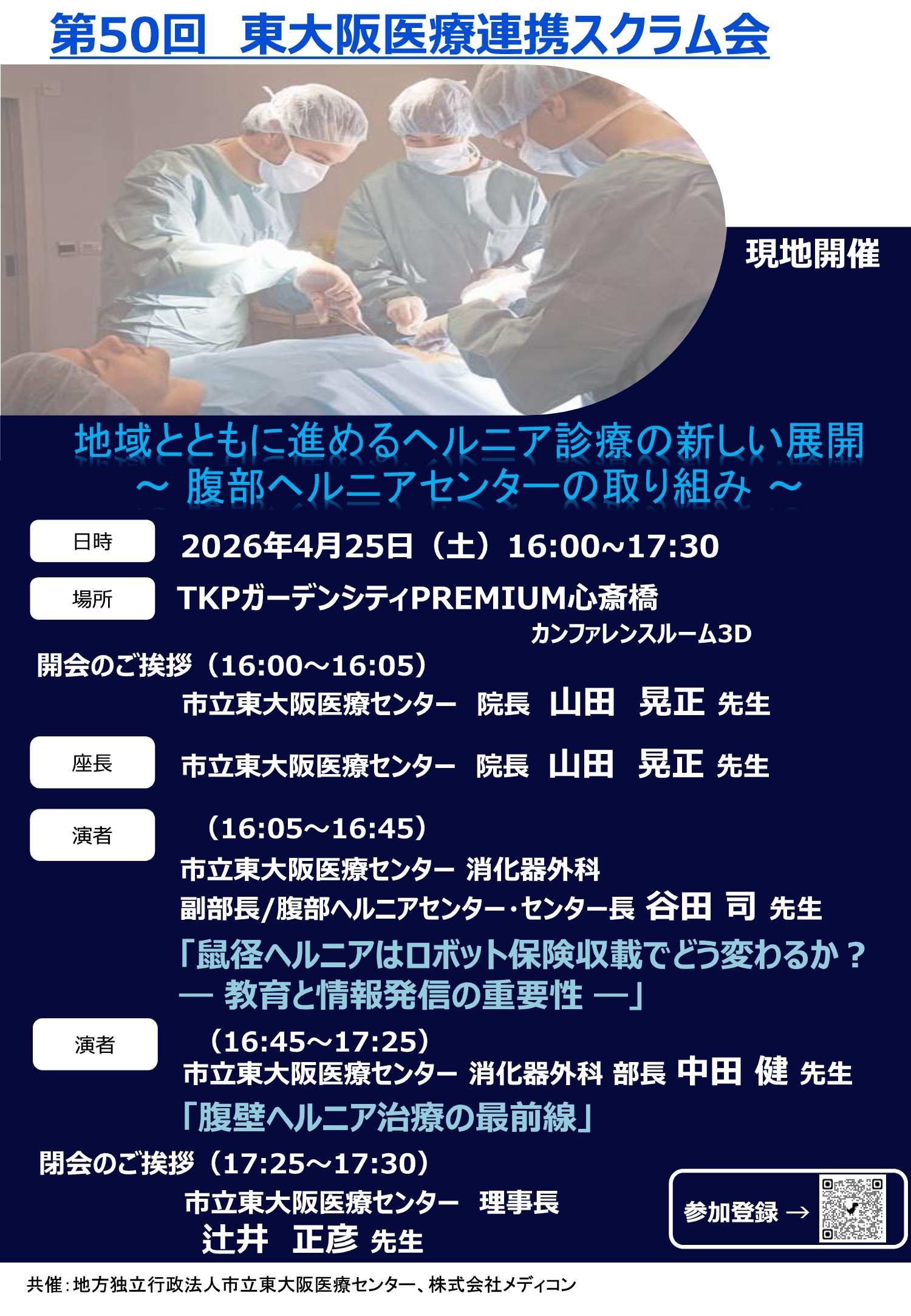地域とともに進めるヘルニア診療の新しい展開 座長 : 山田 晃正 先生 市立東大阪医療センター 院長 『腹壁ヘルニア治療の最前線』 |